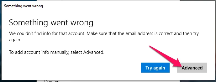 Mail verifies your account information to sign you in automatically. But if it’s unable to do that, click Advance to add your account settings manually.