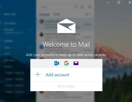But if you’re adding an email account to the app for the first time, Mail takes you straight to a welcome screen prompting you to add an account.
